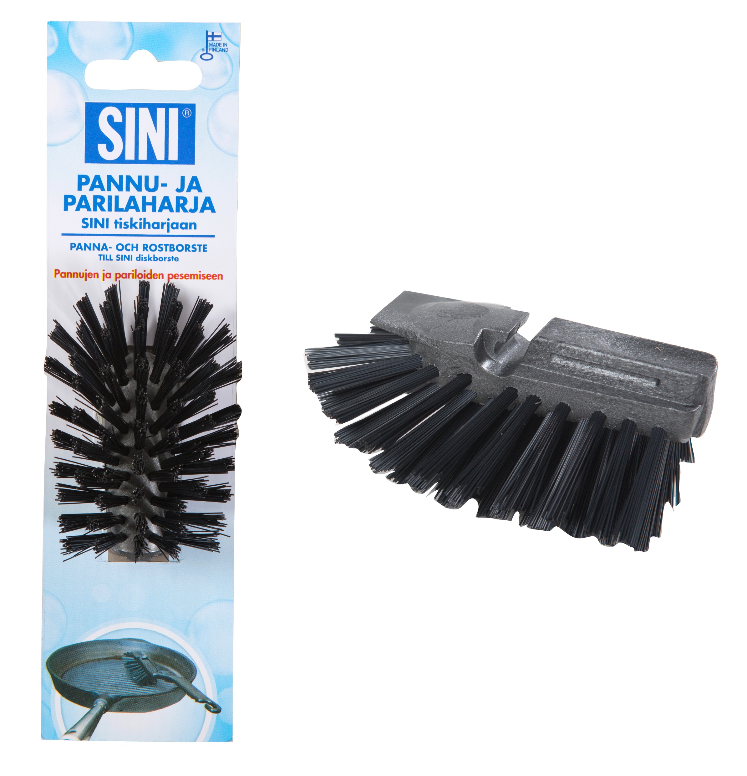 Pannu- ja parilaharjan vaihtopää sopii kaikkiin SINI-tiskiharjoihin, joissa on vaihdettavissa oleva harjasosa. Pannu- ja parilaharjan harjas on napakkaa, kestävää materiaalia, joka on suunniteltu nimenomaan haastavien kohteiden, kuten valurautapannujen ja pariloiden puhdistamiseen. Harja on kuitenkin niin hellävarainen, että sitä voi käyttää myös pinnoitettujen astioiden pesemiseen. Musta harjas ei värjäänny ikävän näköiseksi, kuten valkoinen harjas. Pannu- ja parilaharjan vaihtopää myydään yhden kappaleen pakkauksessa.