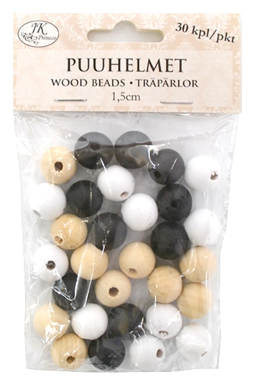 Puuhelmet luonnonvärinen lajitelma Ø1,5cm 30kpl