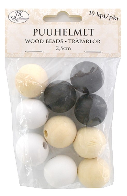 Puuhelmet luonnonvärinen lajitelma Ø2,5cm 10kpl