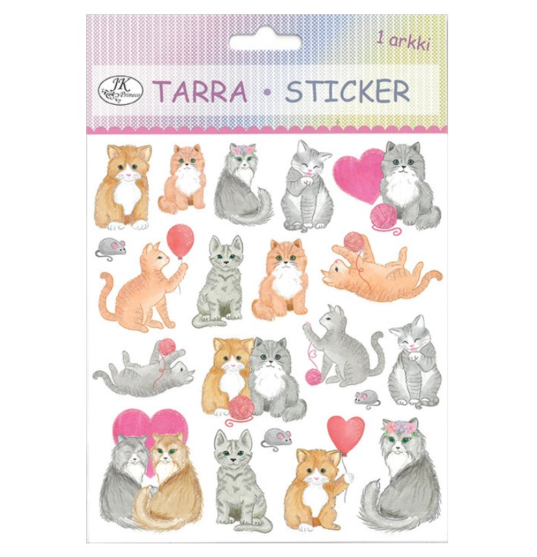 Kissa-aiheisia tarroja askarteluun ja koristeluun. Tarroissa glitteriä. 1 arkki/pakkaus. Tarra-arkin koko 17 x 15 cm.