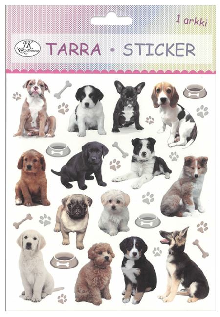 Lajitelma koira-aiheisia tarroja askarteluun.