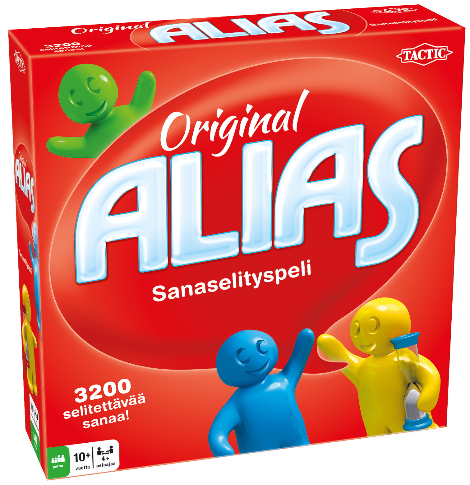 Alias on suomalainen klassikkopeli, jonka ideana on selittää kortteihin kirjoitettuja sanoja joukkuetovereille niin, että he arvaavat, mistä sanasta on kyse. Kun tiimalasin hiekka valuu loppuun, oikein arvatut sanat lasketaan ja joukkue pääsee etenemään yhtä monta askelta kohti maalia. Ensimmäinen joukkue maalissa voittaa pelin! Mukana uusia ajankohtaisia sanoja.