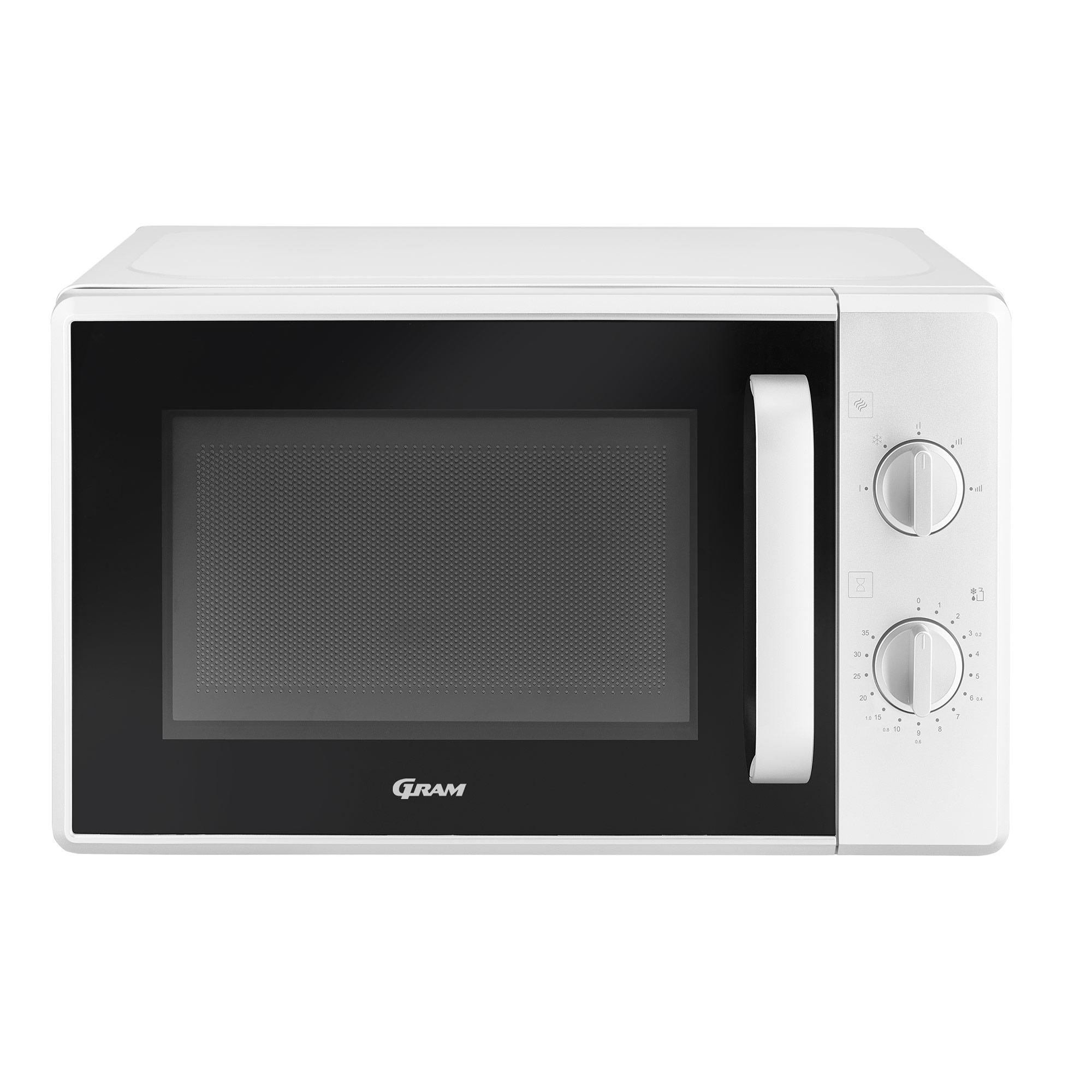 Vapaasti seisova valkoinen mikroaaltouuni MM 2070 . Sopii hyvin pieneen keittiöön.