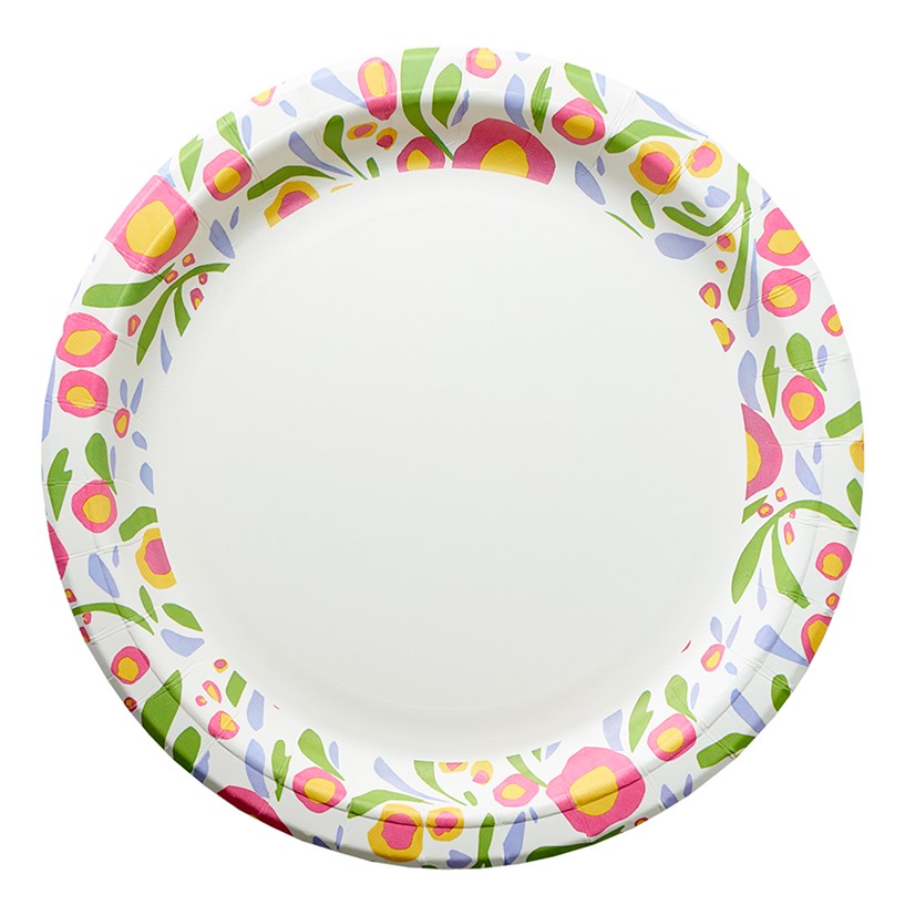 Kauniisti kuvioitu kartonkilautanen sopii kevään ja kesän juhliin ja tapahtumiin.
