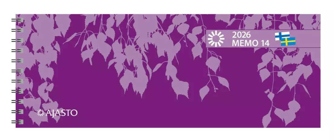 Koko 255 x 95 mm; parikierresidottu; kielisyys: suomi, ruotsi; kaksi viikkoa aukeamalla; päiväkirja 51/2025–1/2027; vuosisuunnitelmat 2026 ja 2027; kansalliset vapaapäivät päiväkirjan sivuilla ja luettelona; kartonkikannet; FSC®-sertifioitu tuote.
