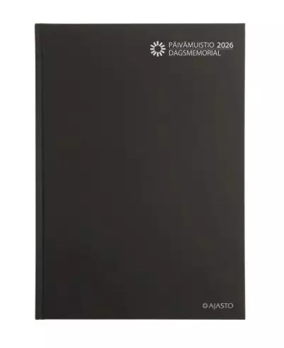 Koko 210 x 297 mm (A4); sidottu; kielisyys: suomi, ruotsi; päiväkirja 49/2025–1/2027; vuosisuunnitelmat 2026–2028; kansalliset vapaapäivät päiväkirjan sivuilla ja luettelona; taulukkoalmanakka vuosille 2027–2032 ja luettelo näiden vuosien tärkeistä päivistä; suomalaiset ja suomenruotsalaiset nimipäivät; takana esiintaitettava vuoden 2026 taulukkokalenteri; Suomen kartta; FSC®-sertifioitu tuote.