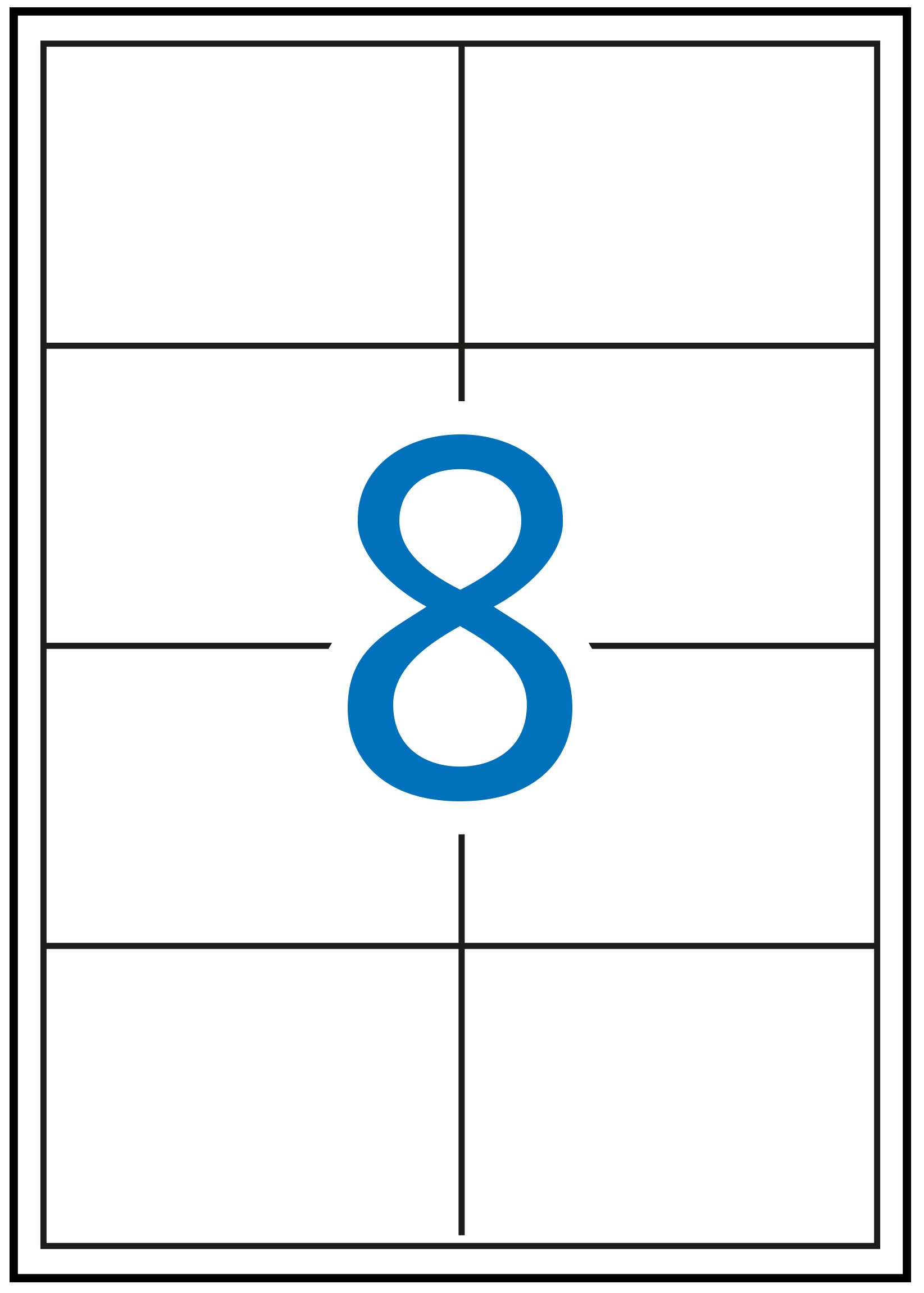 - Valkoinen A4 tulostustarra jaettu 8 tarraan, mitoiltaan 105 x 70 mm.