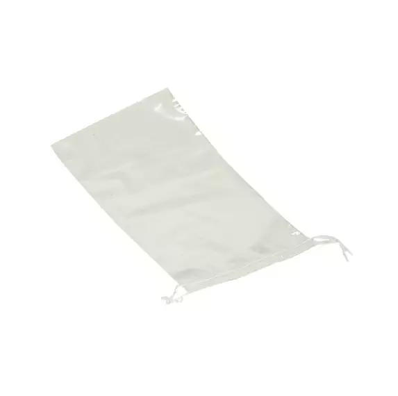 Kätevän kokoinen ensiömuovista (LDPE) valmistettu pussi kiristysnyöreillä.
