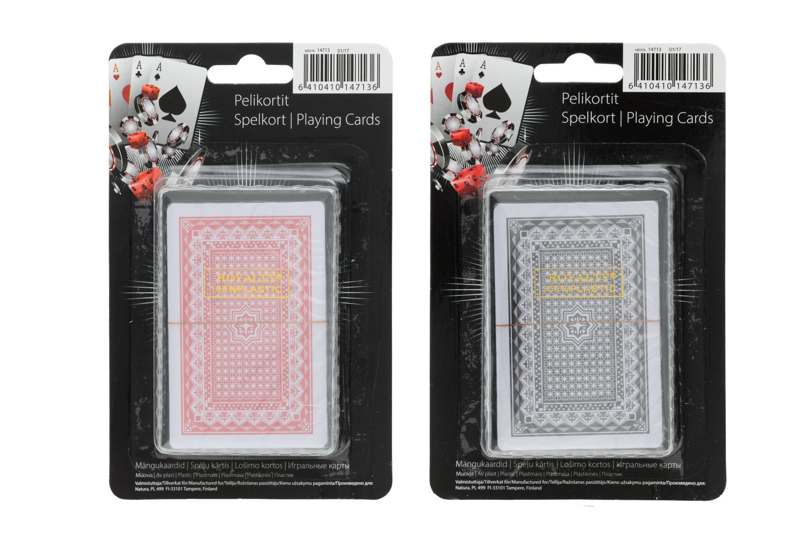 Muoviset pelikortit.