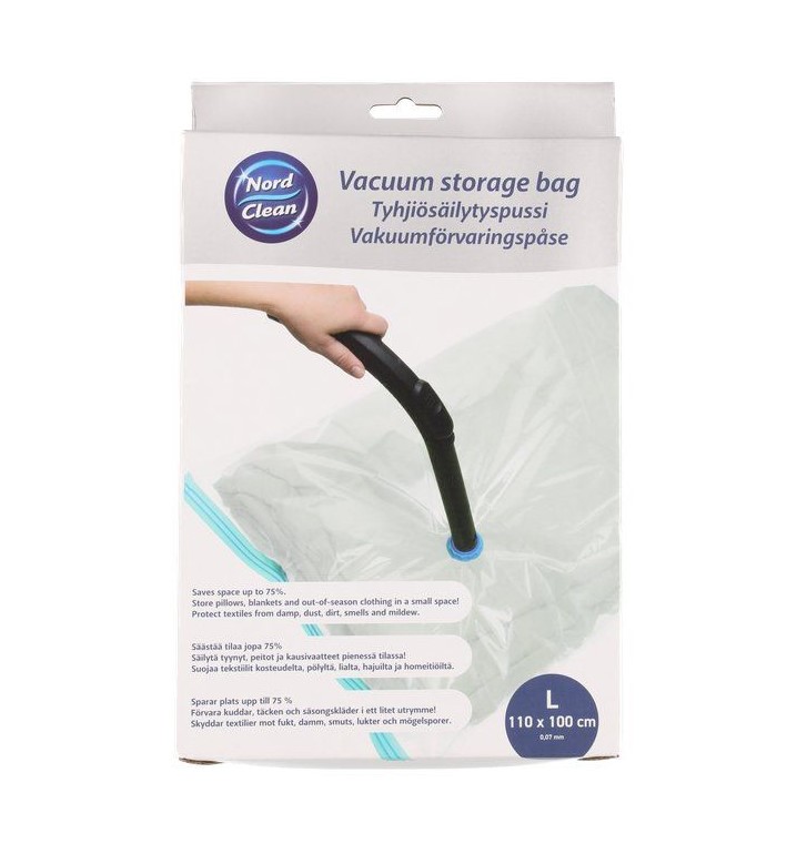 SAIMA Tyhjiöpussi M 80 x 100 cm, vahvuus 0,07 mm. Kätevä ja nopea tapa säästää tilaa varastoinnissa. Mainio valinta erityisesti kodin tekstiileille ja vaatteille. Pakkaa tuotteet pussiin ja...