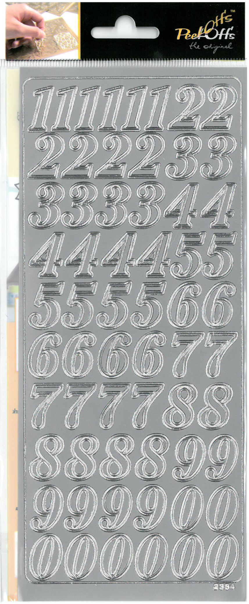 Hopeanvärinen ääriviivatarra isot numerot. Pakkauksessa 1 arkki. Materiaali muovi. Happovapaa. Tuotteen koko: 26,3 x 11,2cm.