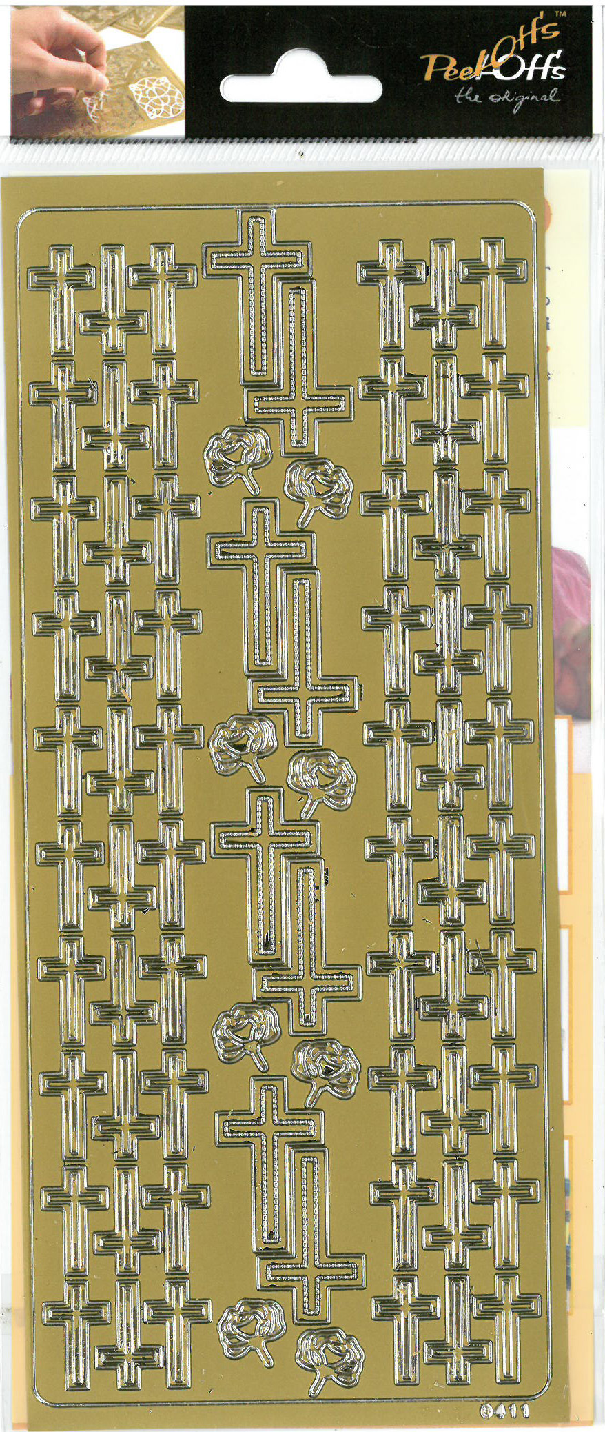 Kullanvärinen ääriviivatarra ristilajitelma. Pakkauksessa 1 arkki. Materiaali muovi. Happovapaa. Tuotteen koko: 26,3 x 11,2cm.