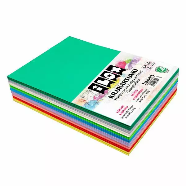- ILOX-askartelukartonkilajitelmissa on 81 arkkia 220g värillistä, happovapaata askartelukartonkia.