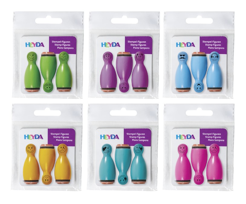 Puinen hymiöleimasinsetti, jossa kolme erilaista leimasinta.