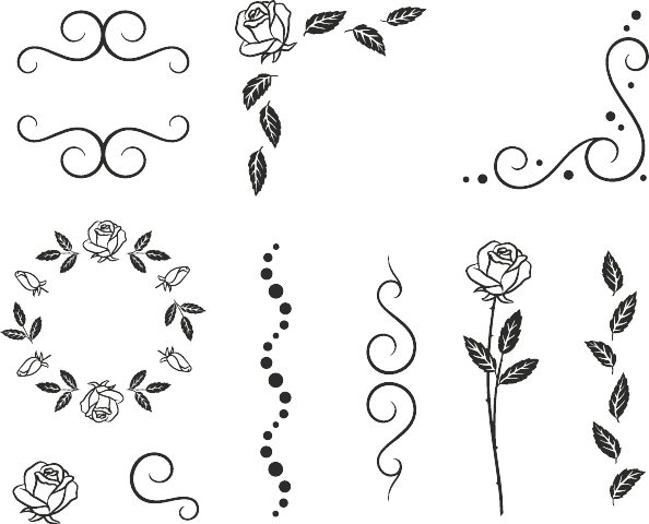Leimasinsetti, jossa 10 puista leimasinta. Korttien ja kutsujen koristeluun.