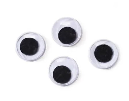 Heiluvat silmät Ø 7 mm. 144 kpl/pss. Itsestään liimautuvat liikkuvat silmät. Valkoinen silmä mustalla pupililla. Pyöreä