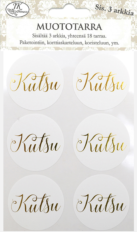 Paperiset muototarrat paketointiin, askarteluun ja koristeluun. Teksti kiiltävää folioprinttiä! Pakkauksessa 3 arkkia.