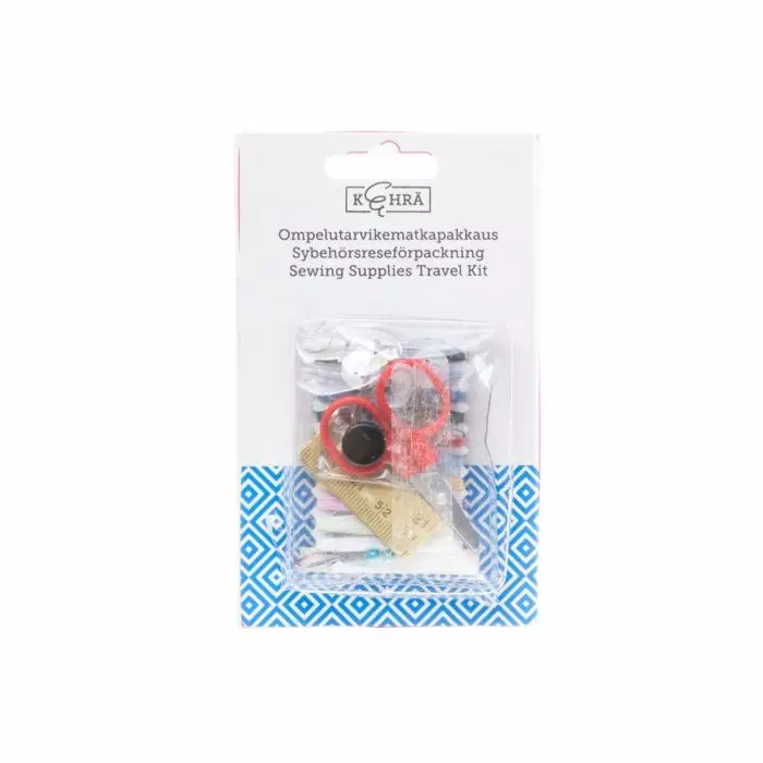 - Setti sisältää 9 lankaa, 2 nuppineulaa, 2 hakaneulaa, 4 nappia, 4 neulaa, sakset, mittanauhan ja langanpujottimen