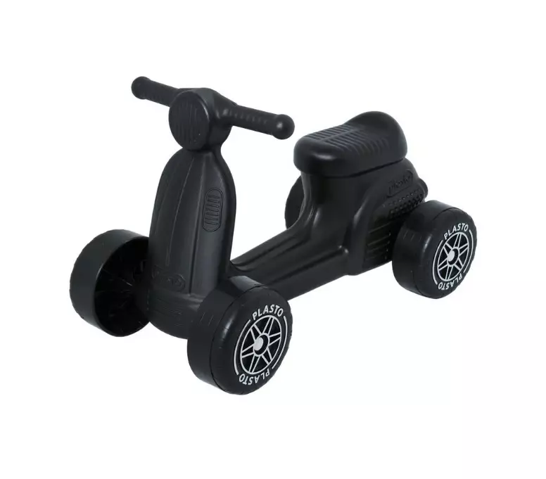 PLASTO Musta lasten potkuskootteri Hiljaiset renkaat. Piha- ja sisätilaleikkeihin! Mitat: Pituus: 54 cm. Korkeus: 32 cm. Leveys: 25,5 cm. Istuinkorkeus: 22 cm.