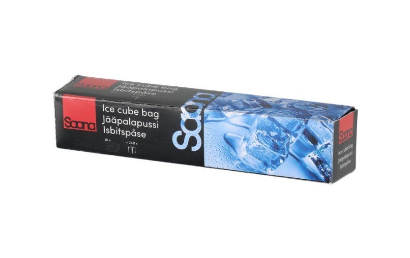 Kätevä itsestään sulkeutuva jääpalapussi. Yhdestä pussista tulee 24 jääpalaa.
