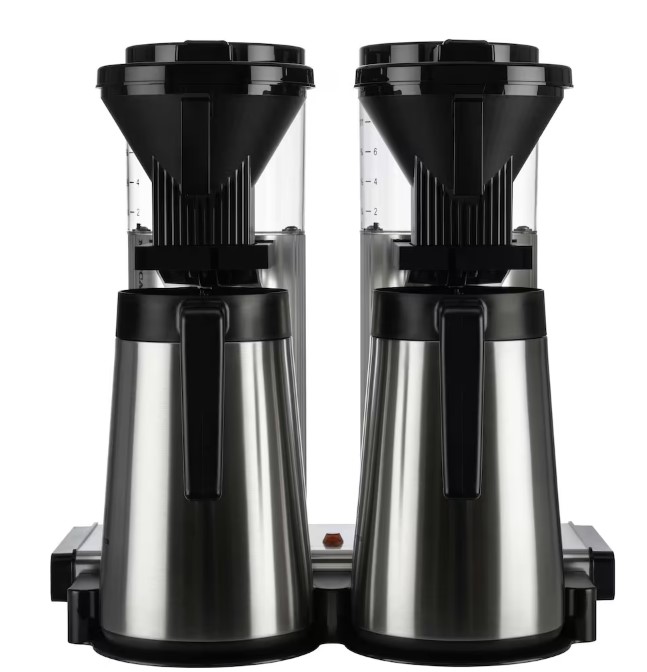 Moccamaster CD Thermo Automatic Double -kahvinkeitin on erinomainen valinta ruokaloihin, toimistoihin, työpaikoille ja suuriin koteihin. Kahvinkeittimessä yhdistyvät laatu ja nopeus, siinä on 2,5 litran tilavuus ja se voi valmistaa 20 kupillista vain kuudessa minuutissa, jotta kahvia saadaan kaikille sitä tarvitseville. Käsin valmistettu ja yksilöllisesti tarkastettu kahvinkeitin on niin onnistunut, että se on saanut jopa ECBC-hyväksynnän.