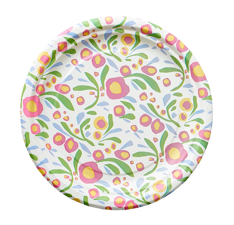 Kauniisti kuvioitu kartonkilautanen sopii kevään ja kesän juhliin ja tapahtumiin.