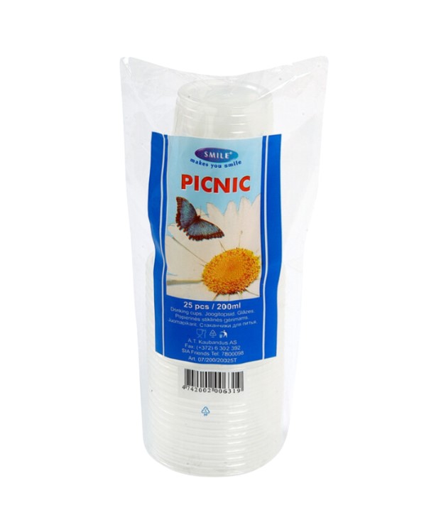 Kertakäyttöinen muovimuki piknikille tai juhliin. Mukin vetoisuus 200 ml.