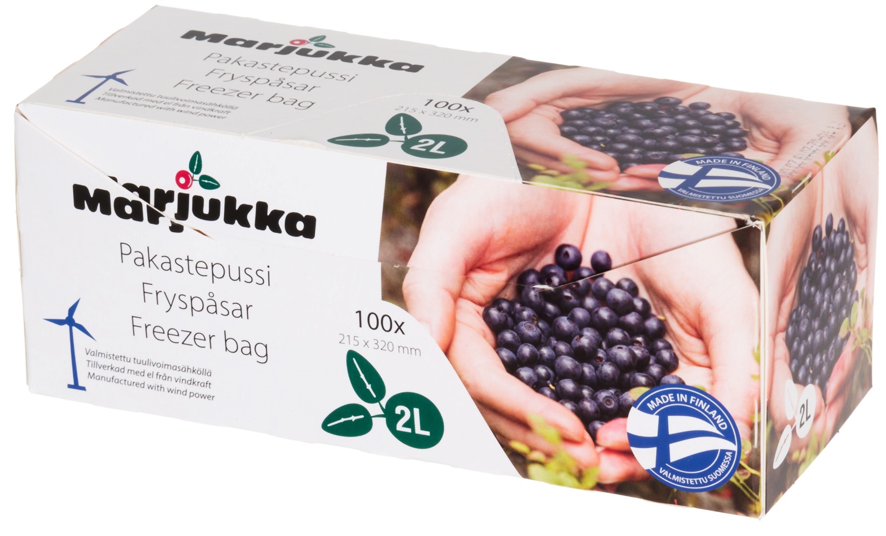 MARJUKKA Pakastepussi 2 L. 100 kpl/rll. Pussin koko: 215 x 320 mm. Käyttölämpötila: - 40 - +70 °C. Valmistettu Suomessa. Kotimainen. Pussit soveltuvat erilaisten ruokien pakastamiseen ja... Lue lisää