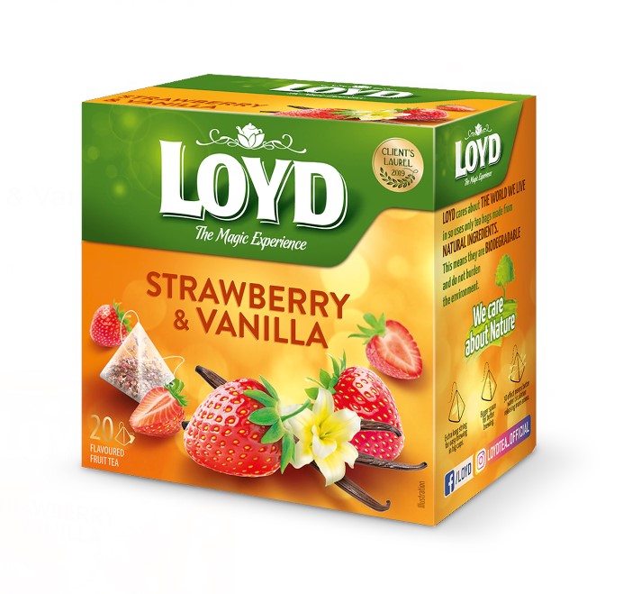 Maustettu marjainen yrttitee mansikalla ja vaniljalla. Kofeiiniton hauduke, ei sisällä teenlehtiä.