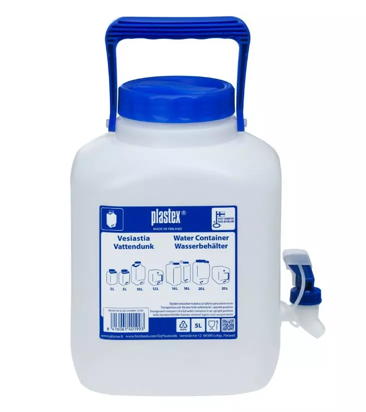 Laadukas, kotimainen ja turvallinen vesiastia painohanalla. Malli sopii kokonsa puolesta erinomaisesti jääkaappiin ja pienempiin tiloihin. Kannen ansiosta ampiaiset ja muut ötökät pysyvät poissa juomasta. Vesiastia soveltuu mökille, veneeseen, retkeilyyn, matkailuautoon, työmaalle ja vesikatkosten aikana juomaveden kuljetukseen. Sopii veden lisäksi hyvin mm. myös mehulle, kotiviinille, kotikaljalle.
