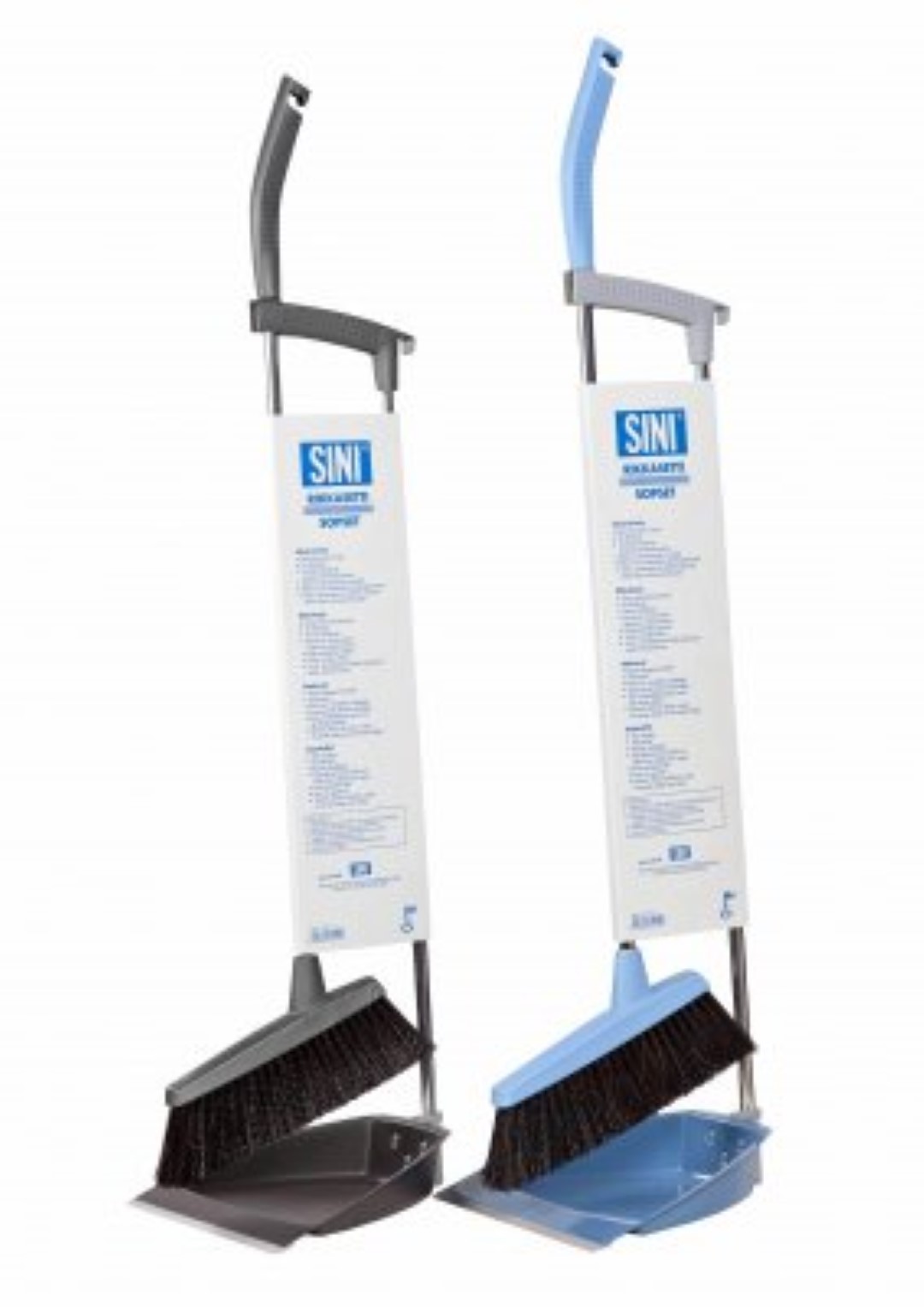 Työskentelyasento on hyvä harjan kahvan ergonomisen muotoilun ja pitkän varren ansiosta. Rikkalapio pysyy tukevasti pystyssä ja siinä on tilava rikkapesä. Rikkalapion pehmeä kumireunus helpottaa roskien ja pölyn keräämistä, ja sen etureunan muoto pitää roskat ja nesteet rikassa.