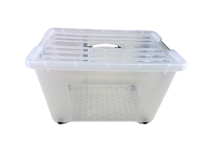 Kannellinen varastolaatikko pyörillä. Vetoisuus 70 litraa.