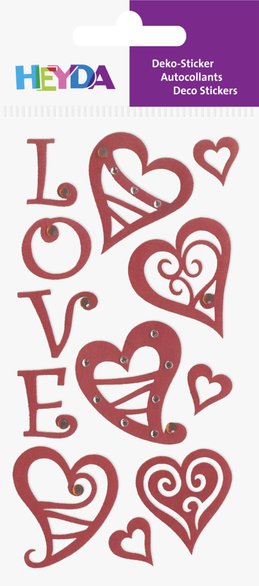 HEYDA Tarra-arkki Sydämet. Pahvipohjaiset tarrat sisältävät yksityiskohtaisia koristeita kuten helmiä, nauhoja ja akryylitimantteja.