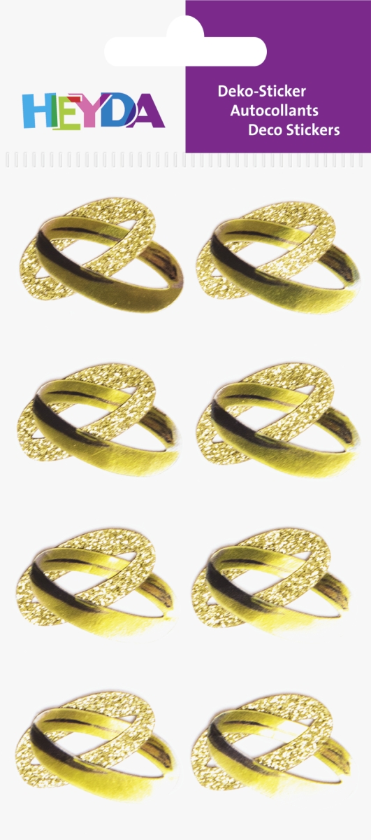 HEYDA Tarra-arkki Sormukset. Pahvipohjaiset tarrat sisältävät yksityiskohtaisia koristeita kuten helmiä, nauhoja ja akryylitimantteja.