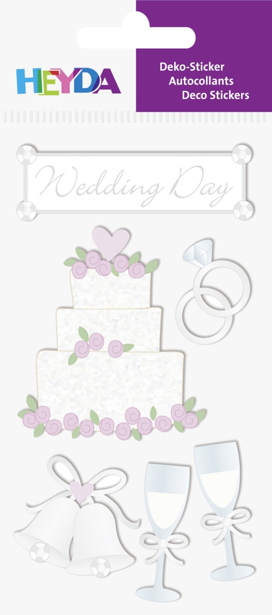 HEYDA Tarra-arkki Hääpäivä. Hääjuhla. Pahvipohjaiset tarrat sisältävät yksityiskohtaisia koristeita kuten helmiä, nauhoja ja akryylitimantteja.