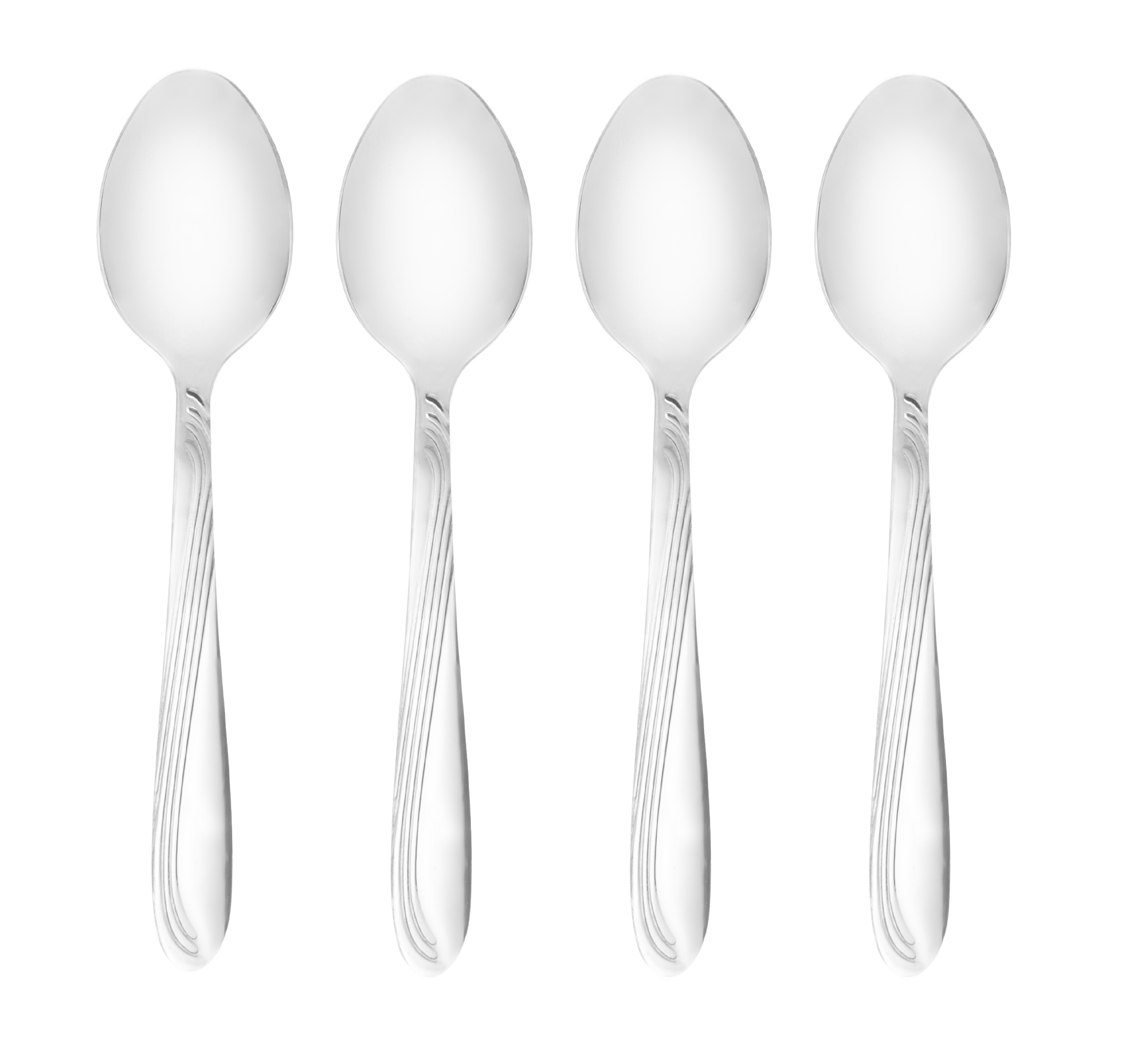 Ruostumattomasta teräksestä valmistettu Basic-teelusikka hillityllä koristekuviolla.