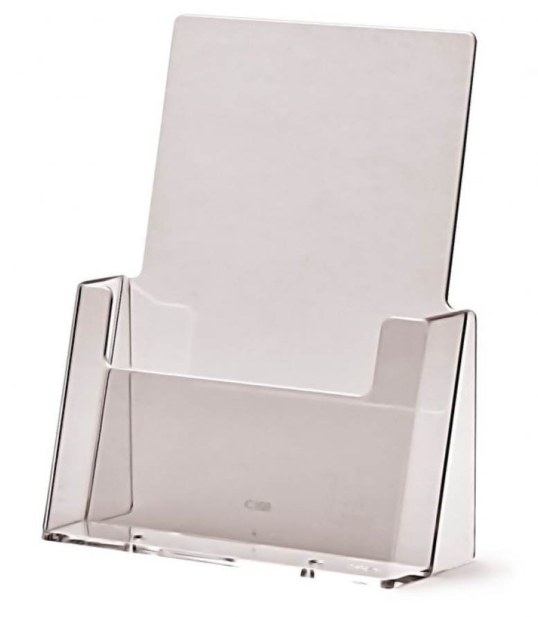 - Kirkkaasta akryylistä valmistettu esitepidike.