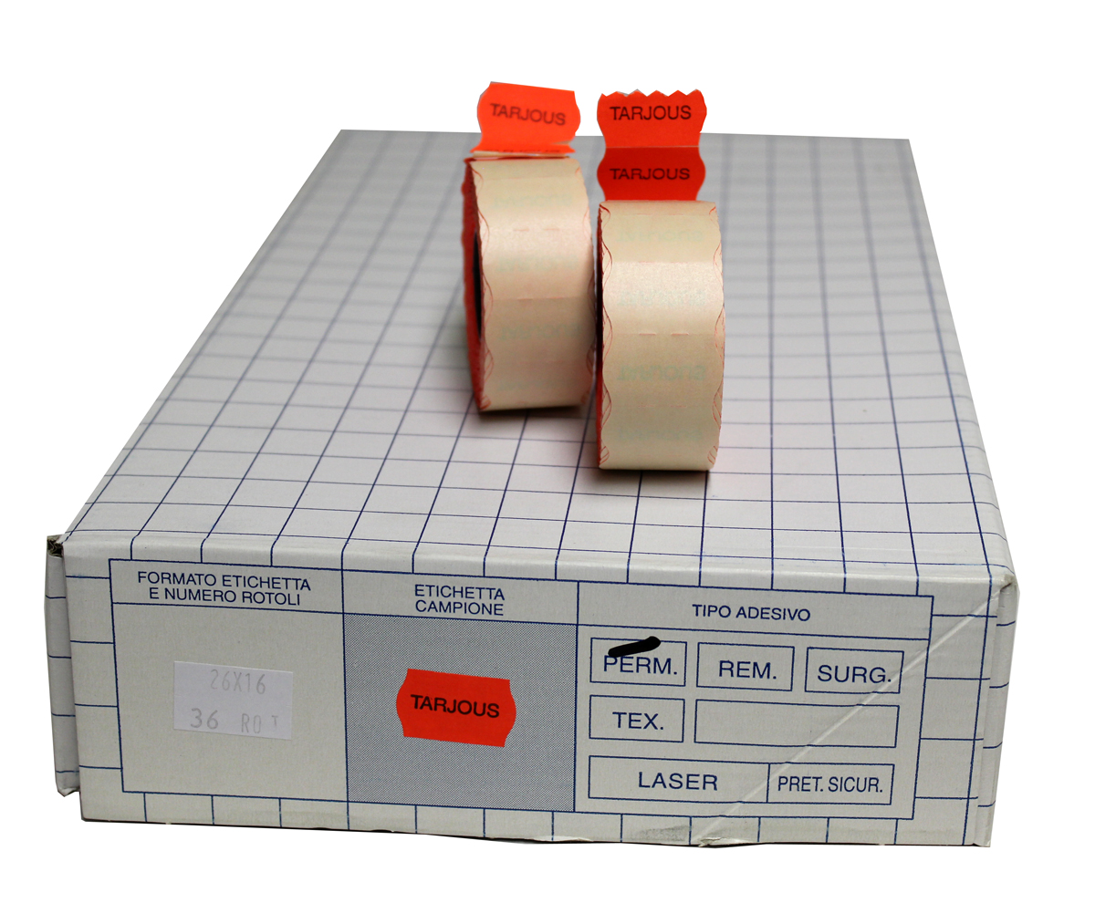 Esipainettu etiketti 26x16mm punainen pitoliimalla Teksti “TARJOUS” 1000 kpl/rll Sopii laitteisiin: Avery, Blitz S14, Blitz S14-A, Blitz S16, Contact, Meto Proline 1426, Meto Eagle 1426, Meto... Lue lisää