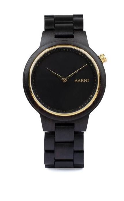 Tyylikäs eebenpuinen rannekello sveitsiläisellä koneistolla.