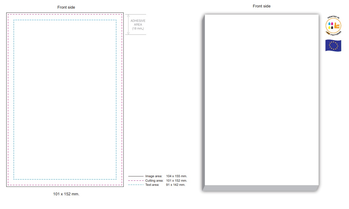 Painettu viestilappu liimareunalla Koko 101x152mm 50 arkkia/nide Valmiista aineistosta Toimitusaika n. 3 viikkoa hyväksytystä vedoksesta