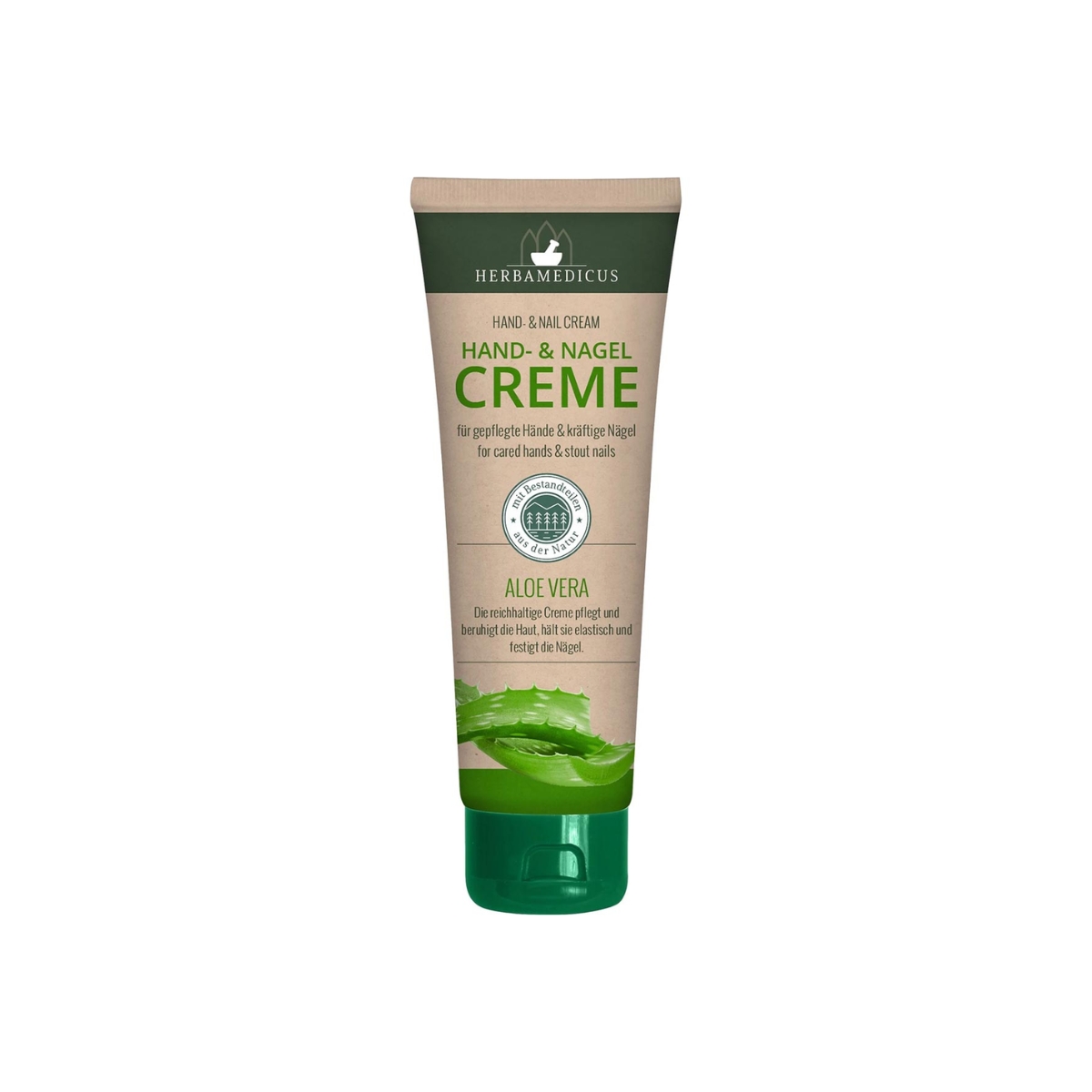 Käsi- ja kynsivoide, joka sisältää kosteuttavaa ja hoitavaa aloe veraa.