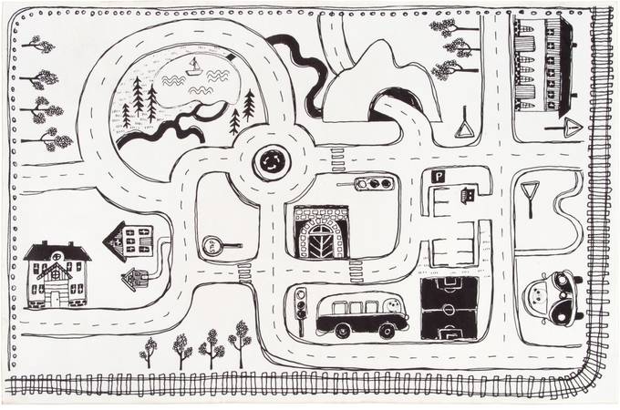 Liikennekuosinen mikrokuitumatto lastenhuoneeseen.