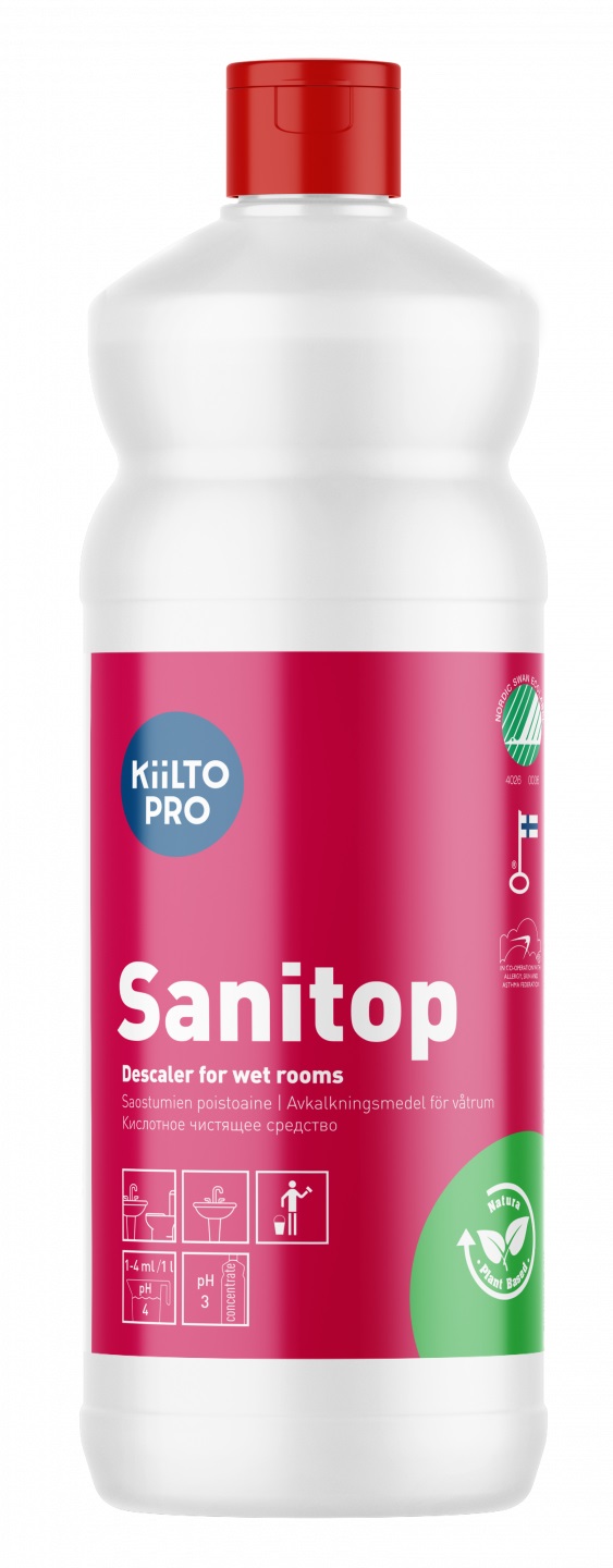 Hapan puhdistusaine saniteettitilojen puhdistamiseen. Kuuluu ympäristöystävälliseen Kiilto Pro Natura -sarjaan.