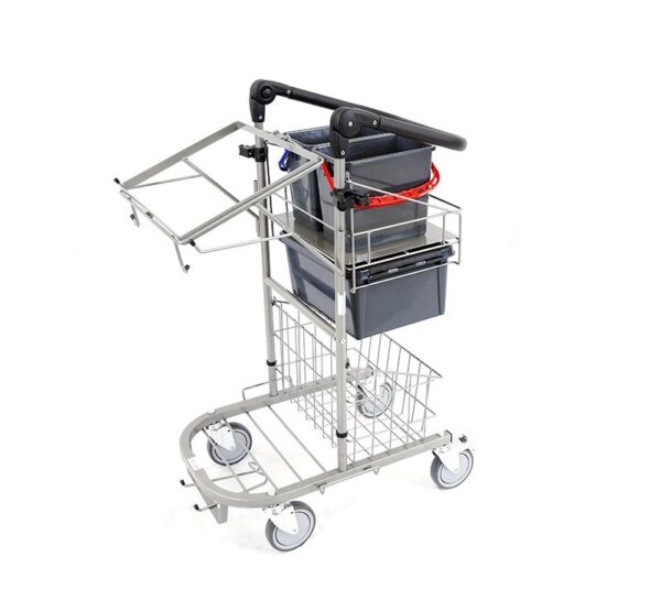 Alfa Ergo Pro on kestävä siivousvaunu, joka on suunniteltu selviämään kovista vaatimuksista niin toimintojen kuin hygieniankin suhteen.