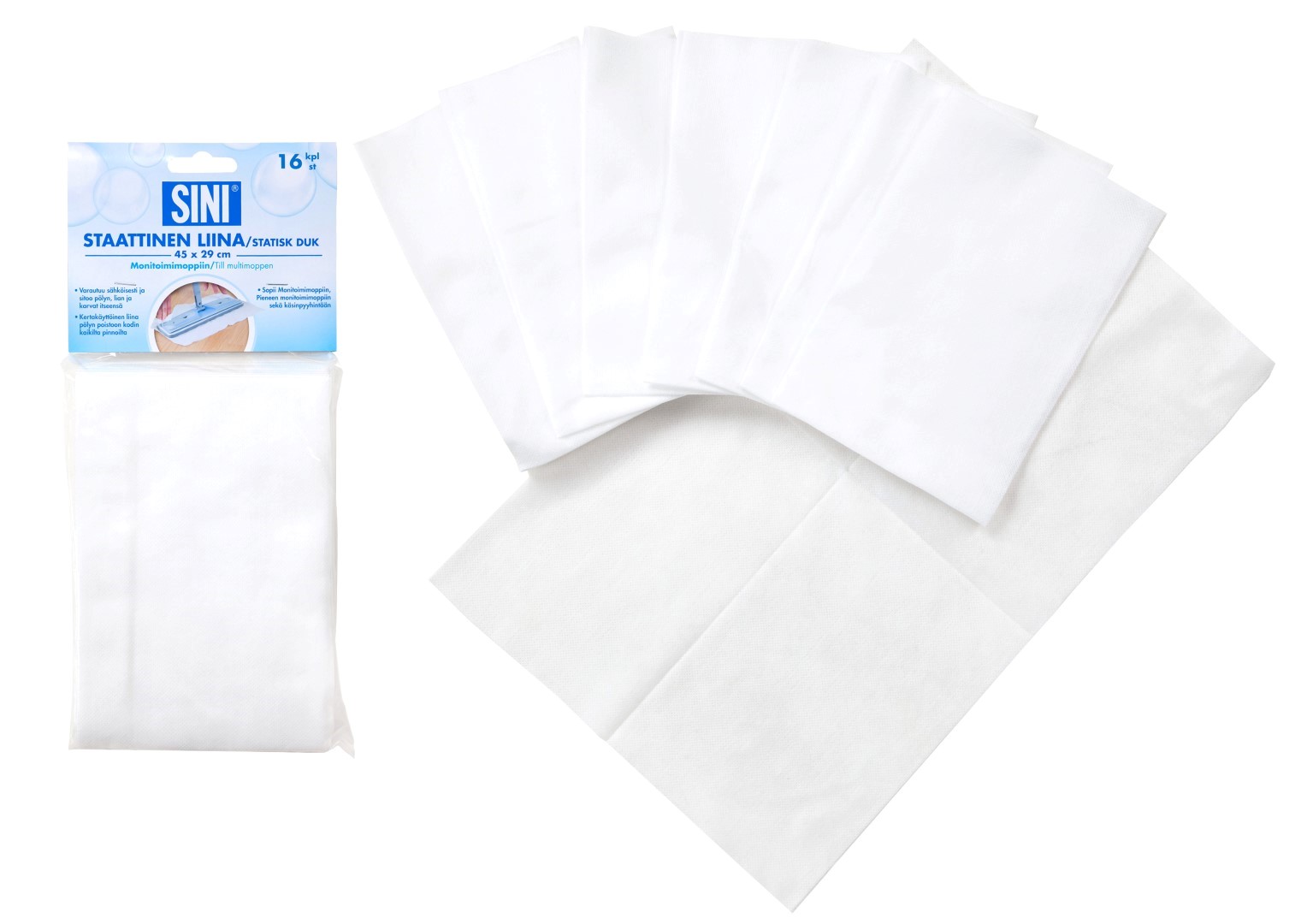 Kertakäyttöinen staattinen liina latautuu pyyhittäessä sähköisesti imaisten pölyn, karvat ja lian itseensä, eikä päästä niitä enää huoneilmaan.