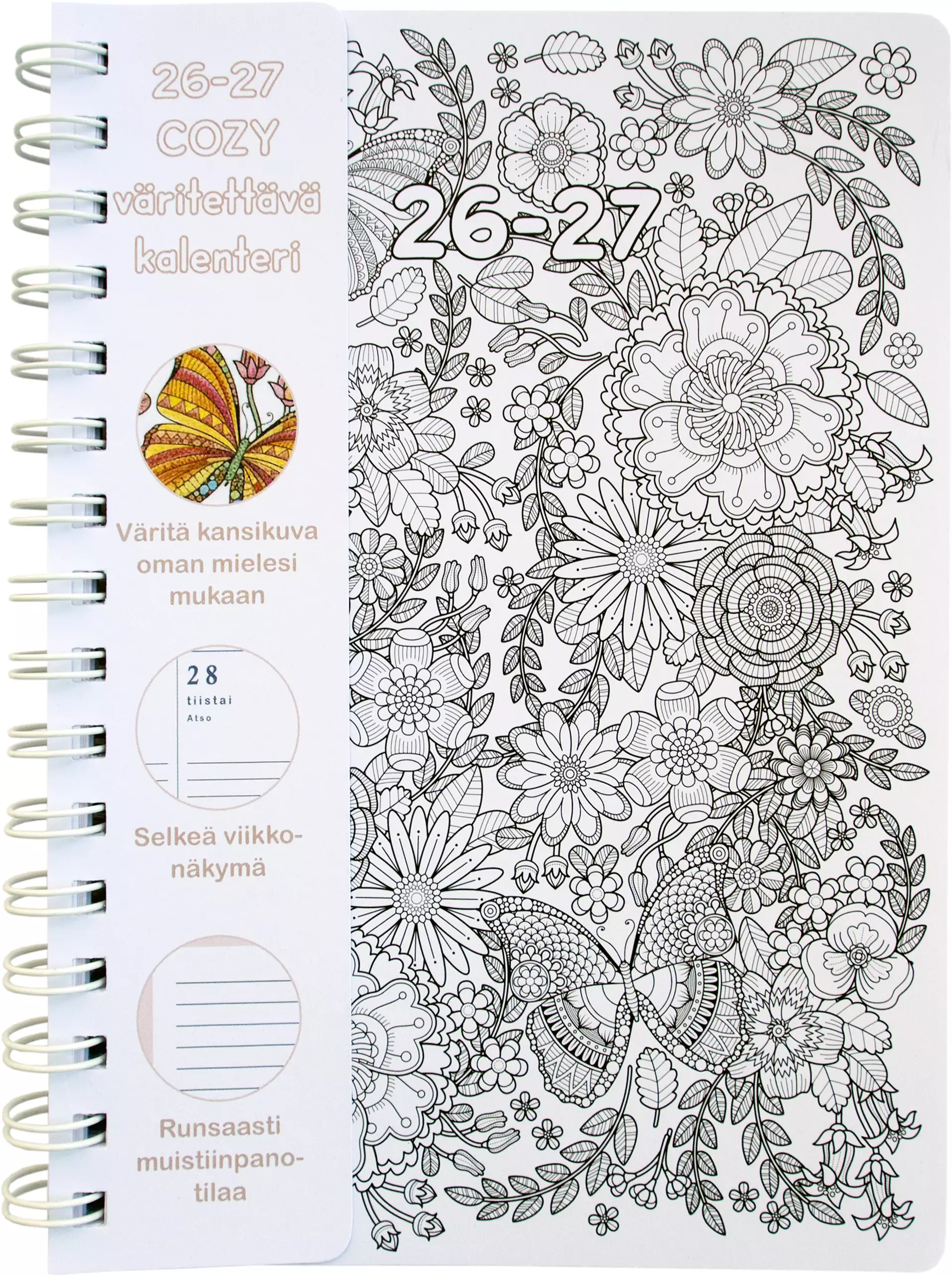 Lukuvuosikalenteri COZY A5 Perhonen, väritettävät kannet