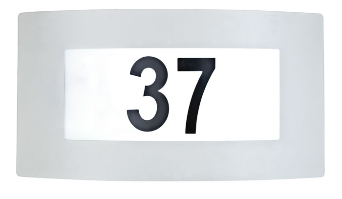 - Kiinnitä talonnumero valaisimeen mukana tulevilla numerotarroilla (3 x 0-9)