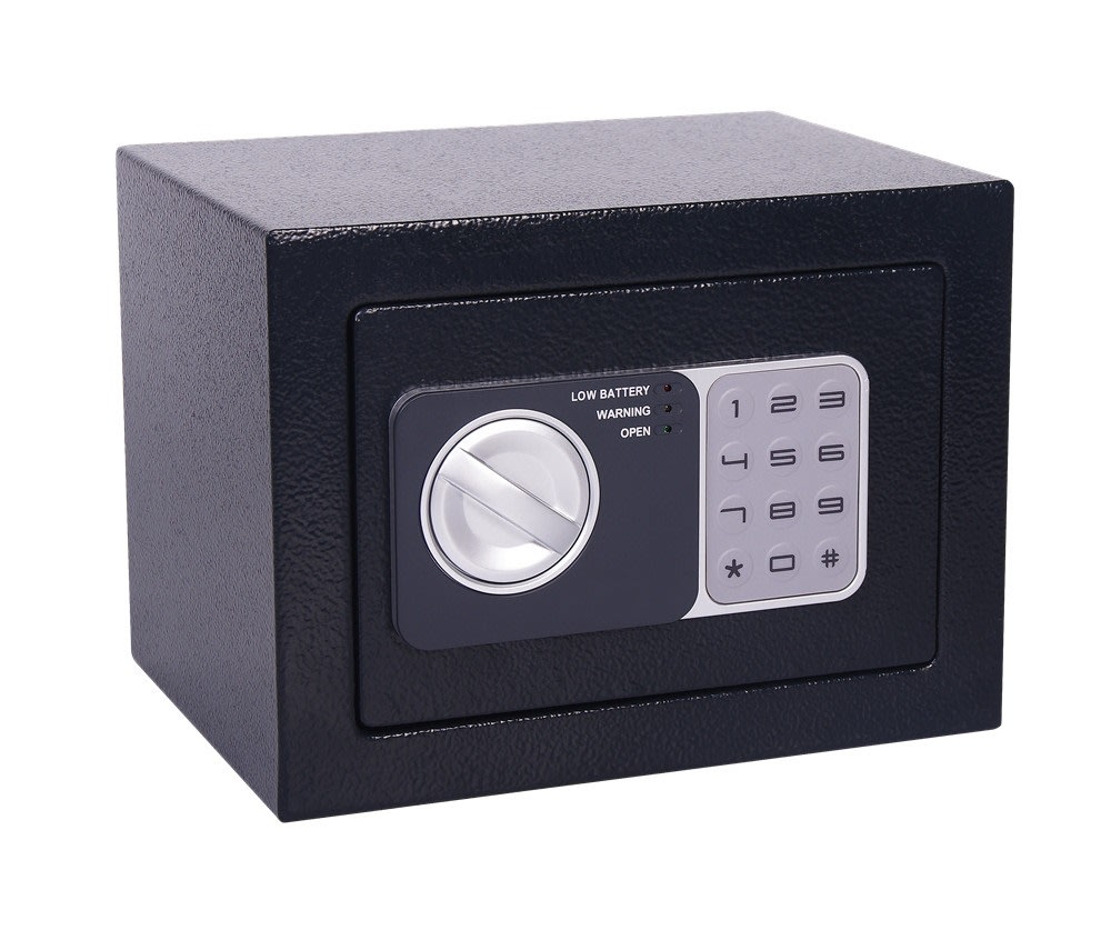 Turvaa asiakirjat ja arvoesineet luvattomalta käytöltä. Kassakaappi toimii ohjelmoitavalla 3-8 numeroisella koodilla, jonka ansiosta kaappia voi käyttää useampi henkilö. Mukana tulee kaksi avainta, joka mahdollistaa hätäavauksen avaimella. Elektroninen lukitus toimii 4x1,5V AA paristoilla, jotka sisältyvät toimitukseen. Kassakaapissa on kiinnitysreiät (2 kpl takana ja 2 kpl pohjassa, halkaisija 6 mm), joista se voidaan kiinnittää lattiaan tai seinään. Ovessa on kaksi salpaa, kummankin halkaisija 20 mm. Kassakaapissa on kolme indikaattorivaloa, jotka toimivat varoitusvaloina, näyttää alhaisen paristotason sekä sen, onko kassakaappi auki. Kassakaapin pohjassa on suojaava matto. Toimitukseen kuuluu kaksi avainta, paristot sekä kiinnitystarvikkeet seinään tai lattiaan.