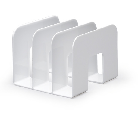 Valkoinen lajittelija. Kirjatuki. Kolme lokeroa - 65 mm leveät. Sopiva luetteloille, lehdille, kirjeille yms. Mitat: Leveys: 215 mm Korkeus: 165 mm Pituus: 210 mm