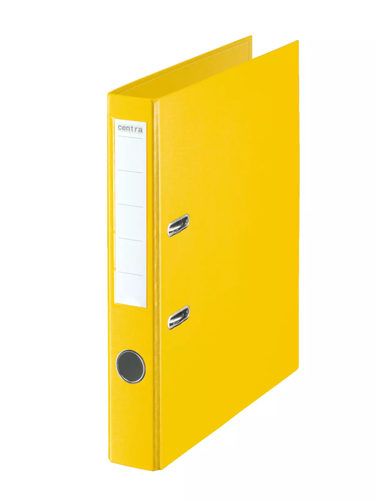 Centra mappi 50mm/A4 keltainen Päivittäiseen käyttöön tarkoitettu PP mappi. 350 A4 arkin kapasiteetti (80 gsm). 50mm selkämys. Mitat: 52x318x287mm. Paino 0,5kg.